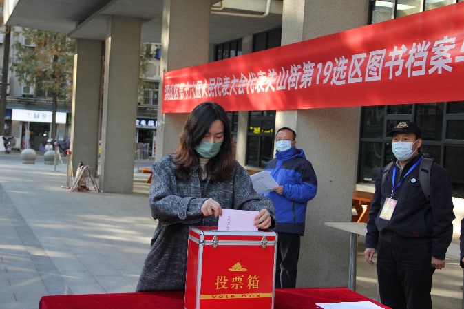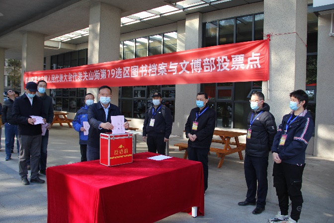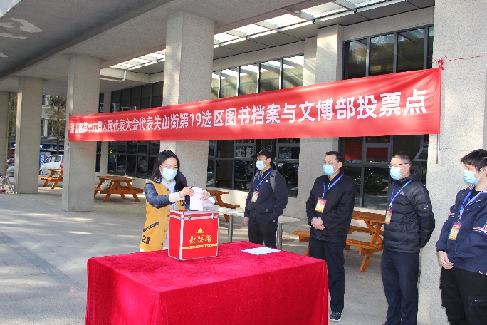 按照学校统一部署,图书档案与文博部属武汉市洪山区关山街道第19选区第27选民小组。投票点的选举活动由部党委书记帅斌主持。现场清点人数后,帅斌宣布了选举注意事项及填写选票的方法,监票人当众检查了投票箱,计票人向各选民分发了选票,接受委托投票的选民凭书面委托证领取了选票,现场庄严肃穆,井然有序。